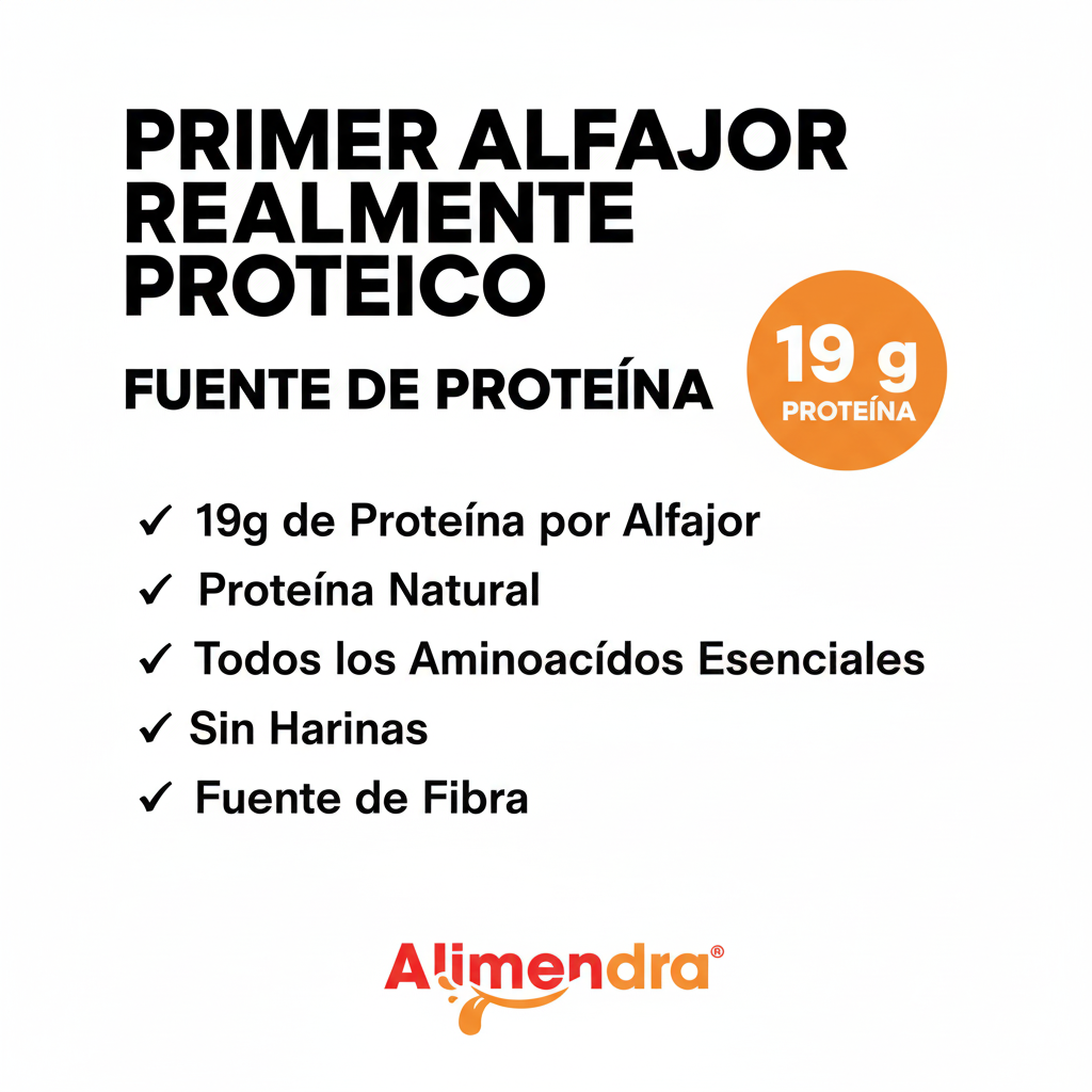 Primer alfajor fuente de proteína. Esto significa que contiene los aminoácidos esenciales que tu cuerpo necesita.